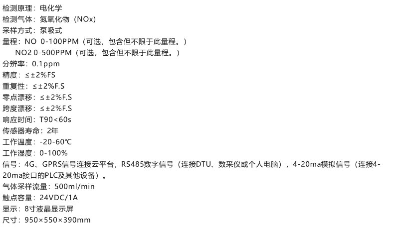 氮氧化物在線式分析儀可全天候24小時(shí)實(shí)時(shí)監(jiān)測(cè)鍋爐、煙窗、低氨燃燒器等相關(guān)設(shè)備的氮氧化物排放監(jiān)測(cè),采用進(jìn)口電化學(xué)傳感器精確檢測(cè)分析氮氧化物成份。分析儀采用多種方式傳輸RS485、GPRS,4G模塊可直接上傳云平臺(tái),并帶模擬信號(hào)4-20mA輸出。選用大尺寸液晶顯示屏,儀器自帶大容量存儲(chǔ)功能。